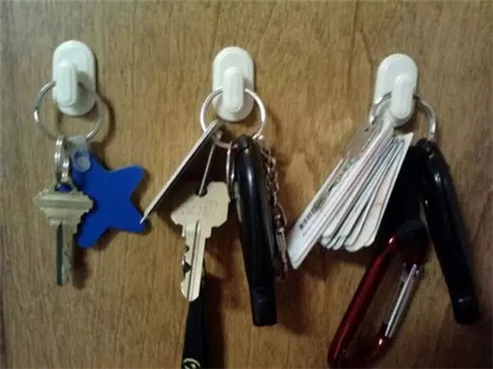 钥匙太多的时候也可以挂起来。这种偏于锋利的东西,总是很难找到合适的地方存放。尤其是当它们比较多的时候。有了挂钩之后,这个问题就容易多了。