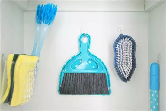 除了衣鞋以外,还有一些类似刷子之类的清洗工具需要收纳。我之前总是把它们放在鞋柜的最里层或者浴室中,不过一段时间后总是很难再找到。如果你像我一样,也可以试试这个收纳方法。