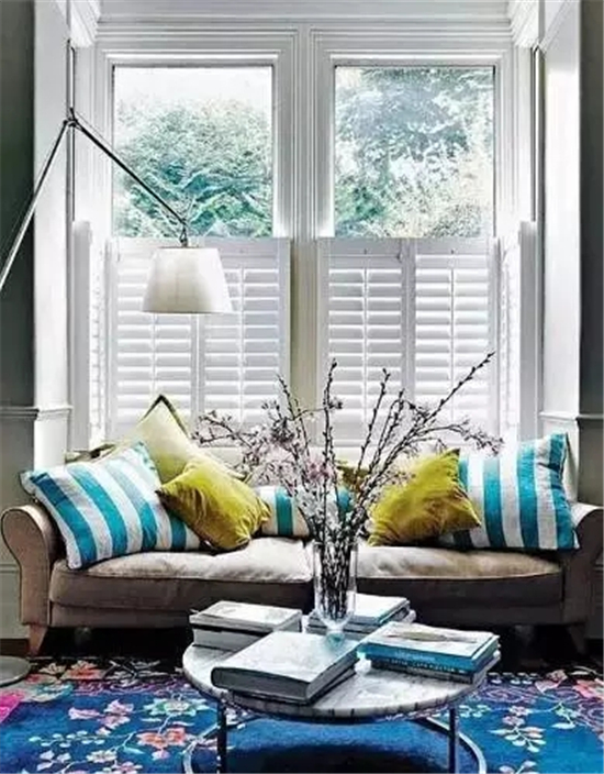 这种设计往往出现在书房与客厅相邻的情况下,既能满足书房私密性需求,又能解决打开后开阔性视觉需求。常常用白色百叶窗来做为隔墙装饰。