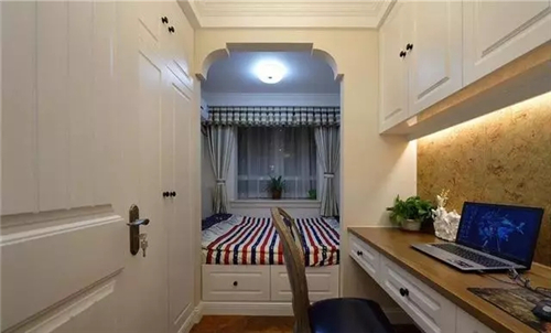 主卧,墙面和收纳柜是白色,大床深色,层次更鲜明。
