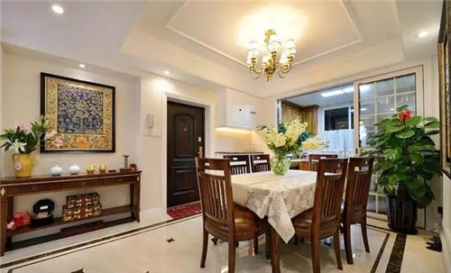 餐厅放了张原木方形餐桌,6人位,适合人口多的家庭。