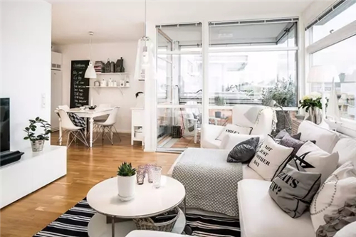小户型不宜采用过暖的颜色做基调,采用白色和米色是最好的,能让房屋看起来宽敞大方。