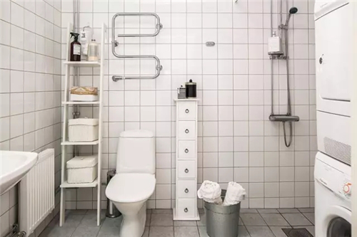 卫生间虽然收纳做得很好,地漏也很大,但是干湿分离却没有做好,防水条和浴帘都没有。这样清理卫生间的话会比较麻烦,不能分开洗刷,每次洗就要洗全部。