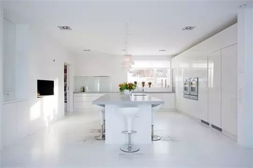 编辑点评:上下一体的橱柜设计,不浪费任何空间位置,凸显对称美的同时,还将居室的收纳功能提高到了极致。