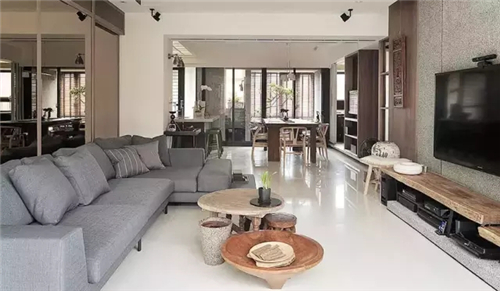 ▲木质家具,青灰色布艺沙发,看起来简约不单调,让生活更舒适。