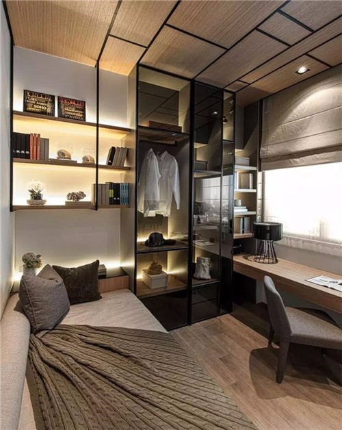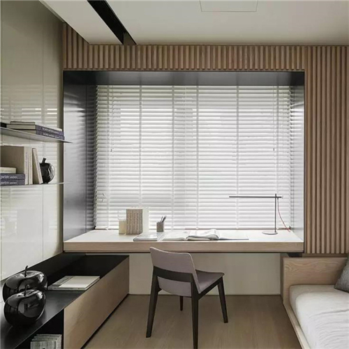在窗前设计一个小小书柜或者书架,留给阅读与思考。背靠风景阅读,只需沿着窗台设计与之契合一体的矮榻,或根据户型结构,在窗台的两侧或矮榻下方打制书柜、装上阅读灯。凭窗远望也好,品茗阅读更妙,读书一角自在闲适。
