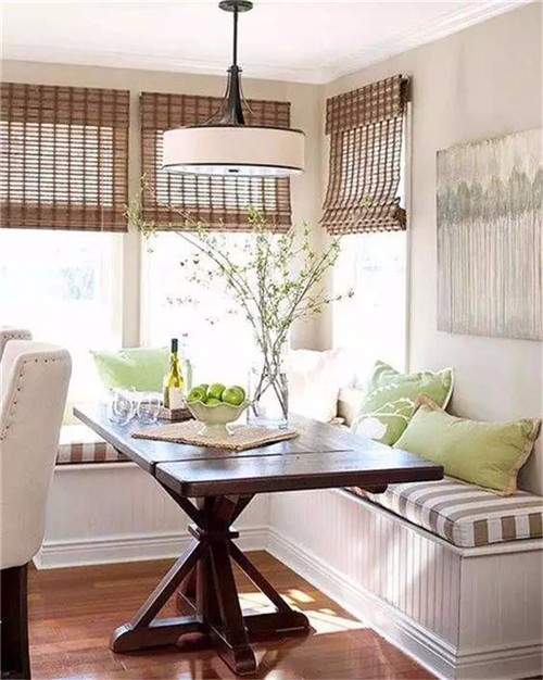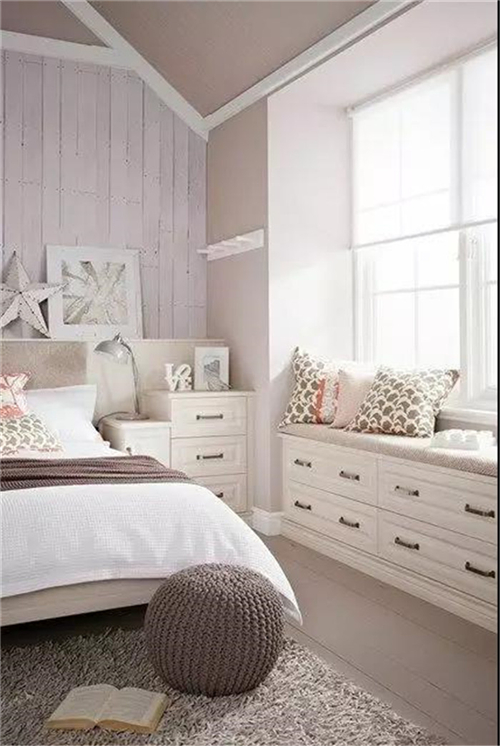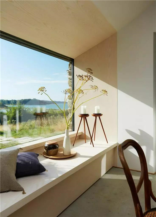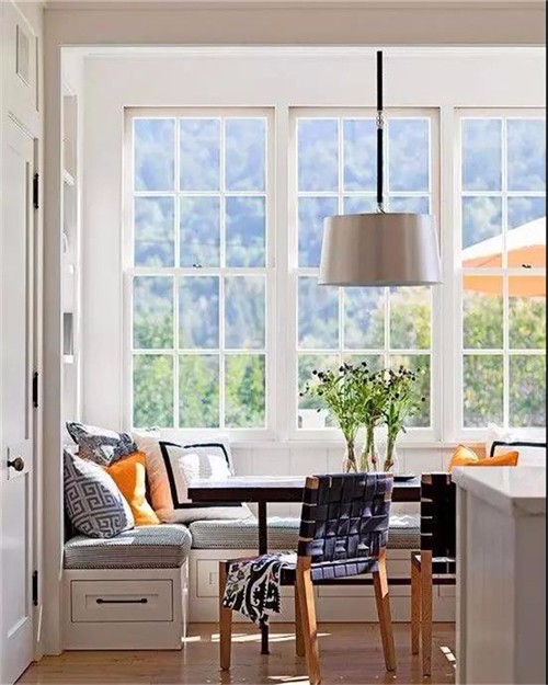 如果不是落地窗,可以在窗下设计一个收纳坐凳,搭配软软的坐垫,几个舒适的抱枕,一个小小的休息角就完成了。冬日里三五好友相聚,则可以一边晒太阳看风景,一边闲聊或者博弈,繁重的生活就显得难得轻松。