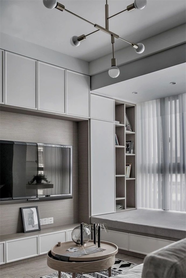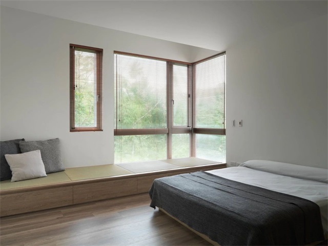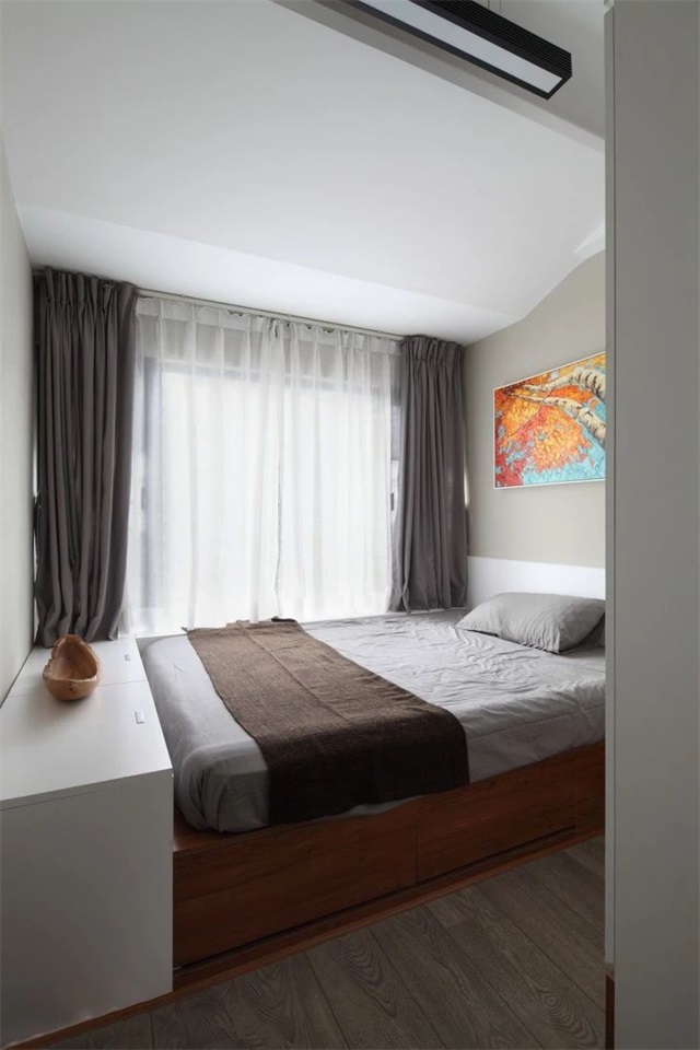 客卧和儿童房里,榻榻米的利用率极高,房间面积较小,放一张大床对空间实在是浪费,榻榻米不仅可以睡觉,还有强大的储物功能。在窗下设计一个榻榻米,简约又大气。