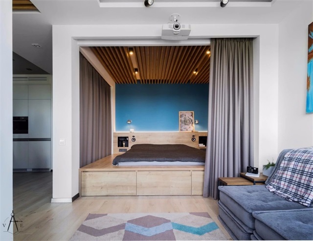 层高够的空间,榻榻米可以做地台,抬高地面,自然而然的区分出空间,地台下面的空间可以灵活利用,地台上方可以预留出床垫的位置,让榻榻米成为你专属的空间。