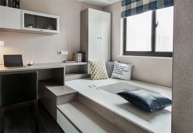 如果想要家里有这样一个多用途的空间,榻榻米可以办你实现了一室多用,满足了现代大多数家庭的各种需求。在榻榻米中间设置升降台,房间即刻转换成待客厅,聊天喝茶、打牌下棋……将升降台降下,既可以作为孩子的游戏室,又可以作为客房使用。
