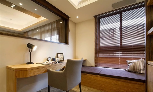 榻榻米是书房的最佳伴侣,在小小的书房内,可以将榻榻米与书桌、书柜一体化搭配,让整个空间更加干净整洁。