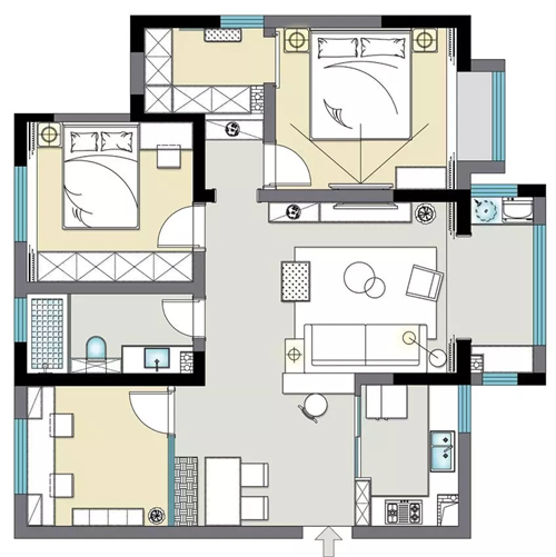 上海的一对年轻夫妇觉得自己的新家隔间太多、采光不好,所以在装修前就开始阅读大量资料,再结合了自己的需求.通过拆除了两面非承重墙,减少了实体墙的分区隔断,帮助光线传播,采用开放式空间并且运用玻璃隔断来借光。最终达到了他们“借光”的目的。