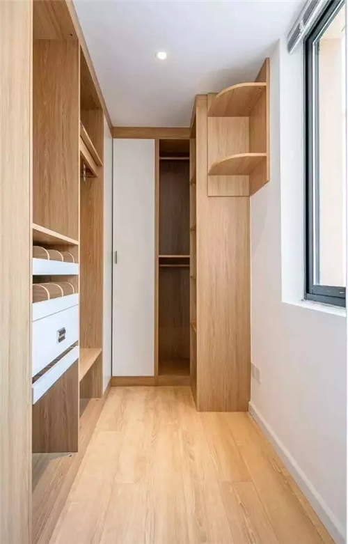 将原本主卫改造成女主喜爱的衣帽间,半开放式收纳模式满足不同的储物需求。