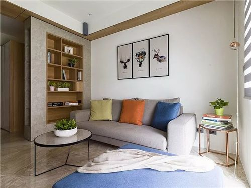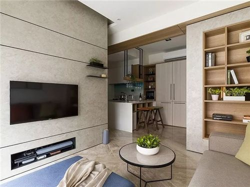 靠近客厅的这一面是做了个嵌入式的书墙,摆放自己喜欢的书籍和绿植,让客厅充满了文化气息。