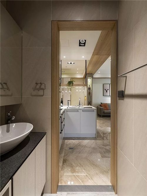 卫生间是在厨房的侧边,镜柜真的很适合小户型,可以扩大空间视觉感,又多出了一些收纳空间。