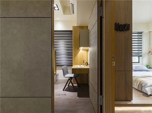 卫生间的边上就是两间卧室了,略带隐形门的设计,把卧室给隐藏起来,看起来也更加舒服。