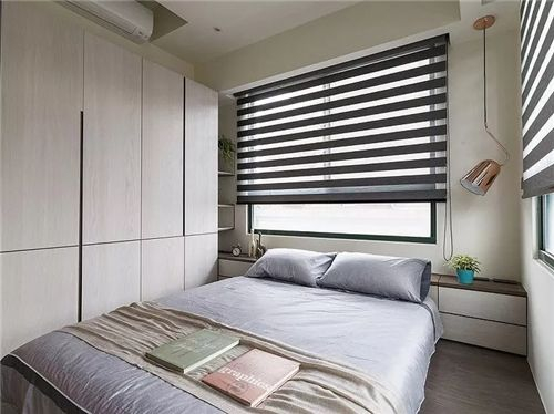 主卧室的采光是非常棒的,在床头背后留下了一个10~20cm的空间做收纳,把床头柜也给省了,再加上到顶衣柜,收纳空间超多。