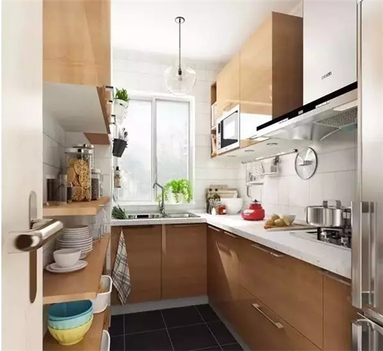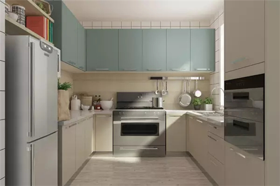 U形橱柜除了美观实用之外,另一个优势,能充分的利用活动空间,最适合狭窄的空间。因为U型橱柜的人性化设计,在厨房做饭时可以灵活的走动也不怕会碰到。
