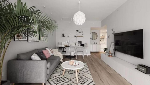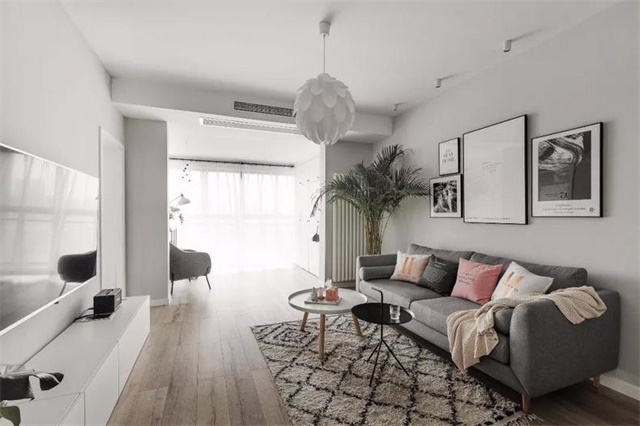 ▼整个房子就是简单的黑白灰,这是北欧风特别明显的标志,然后软装搭配了莫兰迪色系元素,让整个空间活泼起来。
