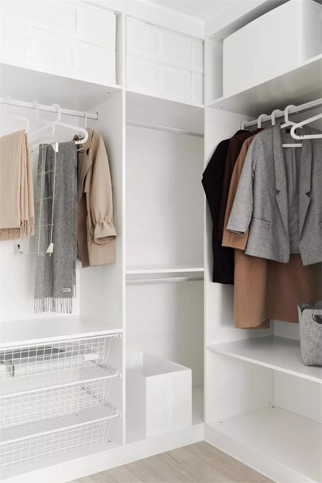 因为安装了新风系统,所以不用担心衣帽间会落灰,衣物分类放置整齐看着心情都会变好、