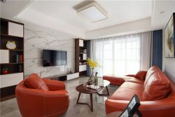 这个家里,客厅特别亮眼的,橘色的沙发和座椅第一次见,搭配得甚是好看。大理石的巧妙融入,为家注入了浓郁的现代气息,分分钟提高你的家居档次! 客厅 ▲时尚的客厅摆放着橘