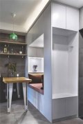 设计一定是功能和视觉的双重体现,尤其是在旧屋改造中,如何巧妙最大化地利用空间,增加功能区,又实现视觉上的协调,是评价改造成功与否的重要标准。 在玄关做了一个座椅高度