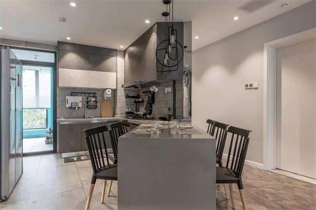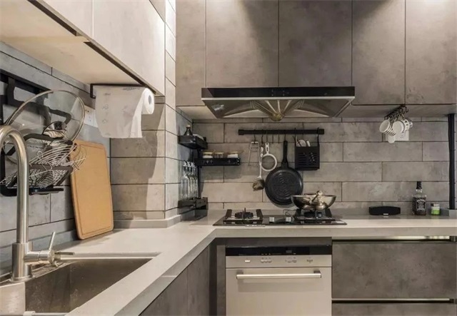 灰色调的厨房和金属质感的厨具很搭调,中和了金属的高冷,由不是那么热情跳跃,显得更加时尚了。