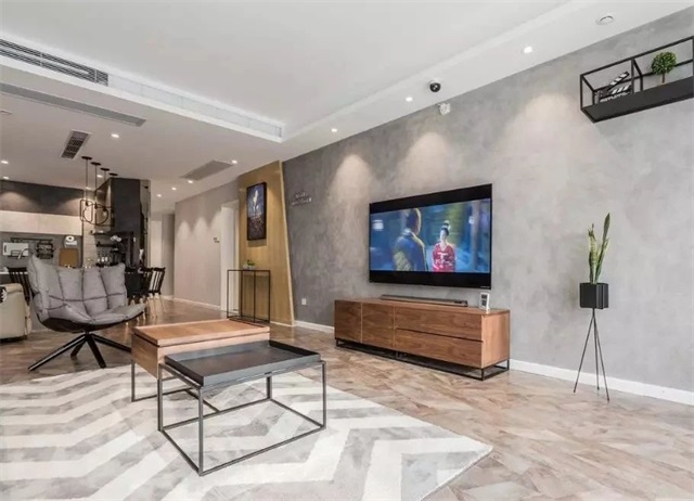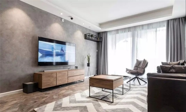 灰色墙面,灰白地毯,外加简单的实木家具点缀,更加突出了简约的风格。
