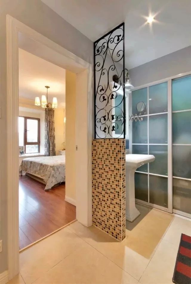 干湿区分开,半实体墙和半铁艺格栅虚实结合,形成鲜明对比。