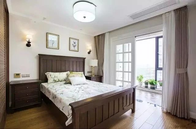 如图次卧用被套搭配出了美式田园的感觉,显得非常静谧温馨。