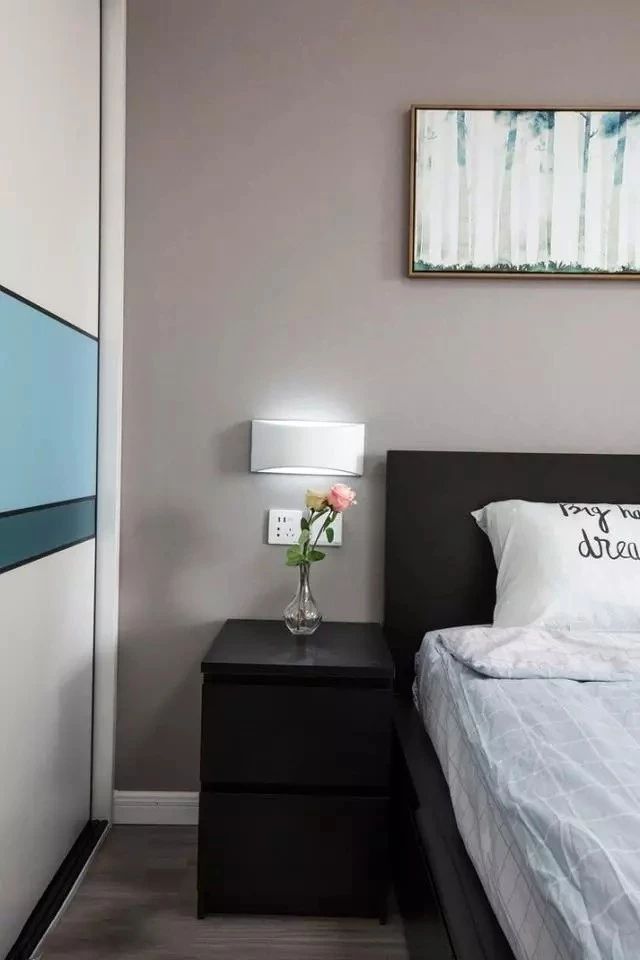 主卧沉稳的配色大气,光源分布均匀,不会过于刺眼,适合休息。