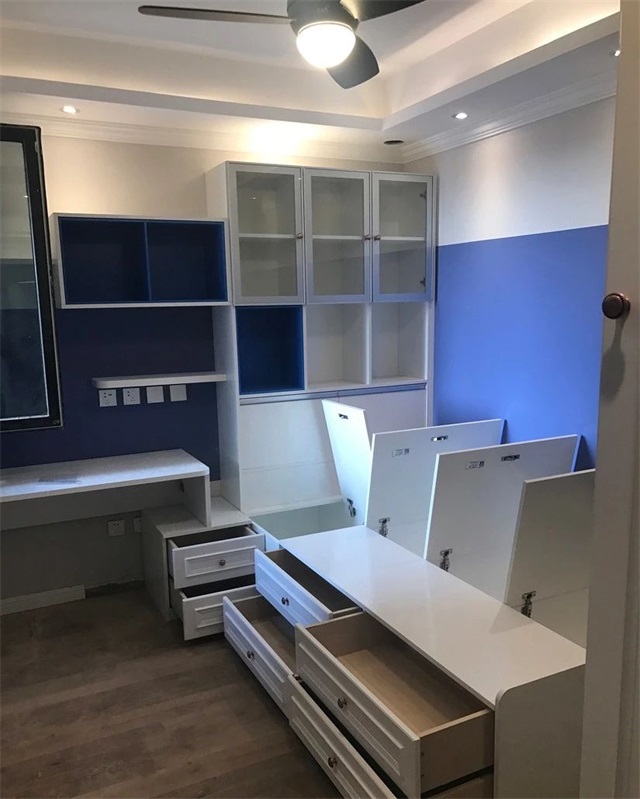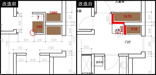 利用了放冰箱多出来的空间,扩大了儿童房衣柜空间。