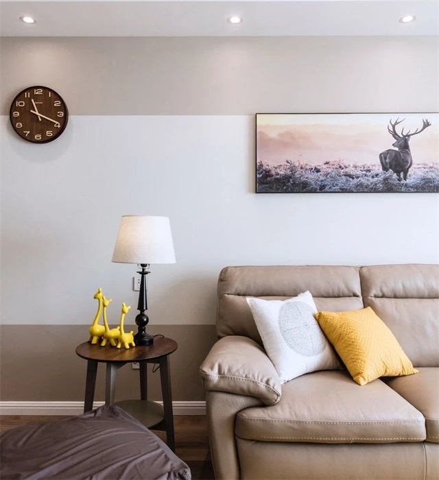 小挂钟、装饰画缓解墙面单薄,营造更多在家的生活气息。